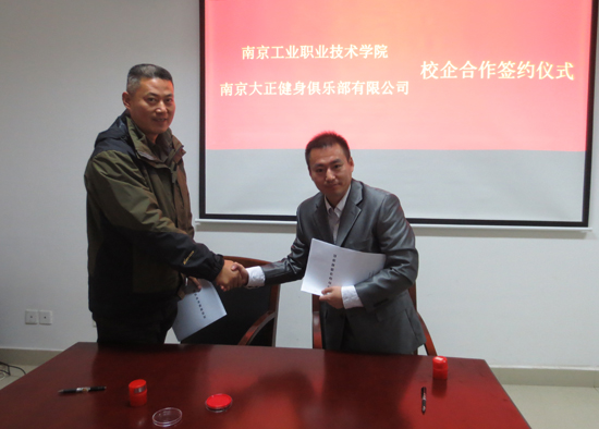 11月21日上午11点,我校与南京大正健身俱乐部有限公司签订了校企合作协议。参加签约仪式的校方代表有发展合作处副处长步雨笋,体育部部长郑崴、副部长肖留根、党支部书记何春刚,企业方代表南京大正健身俱乐部有限公司总经理施江峰等。