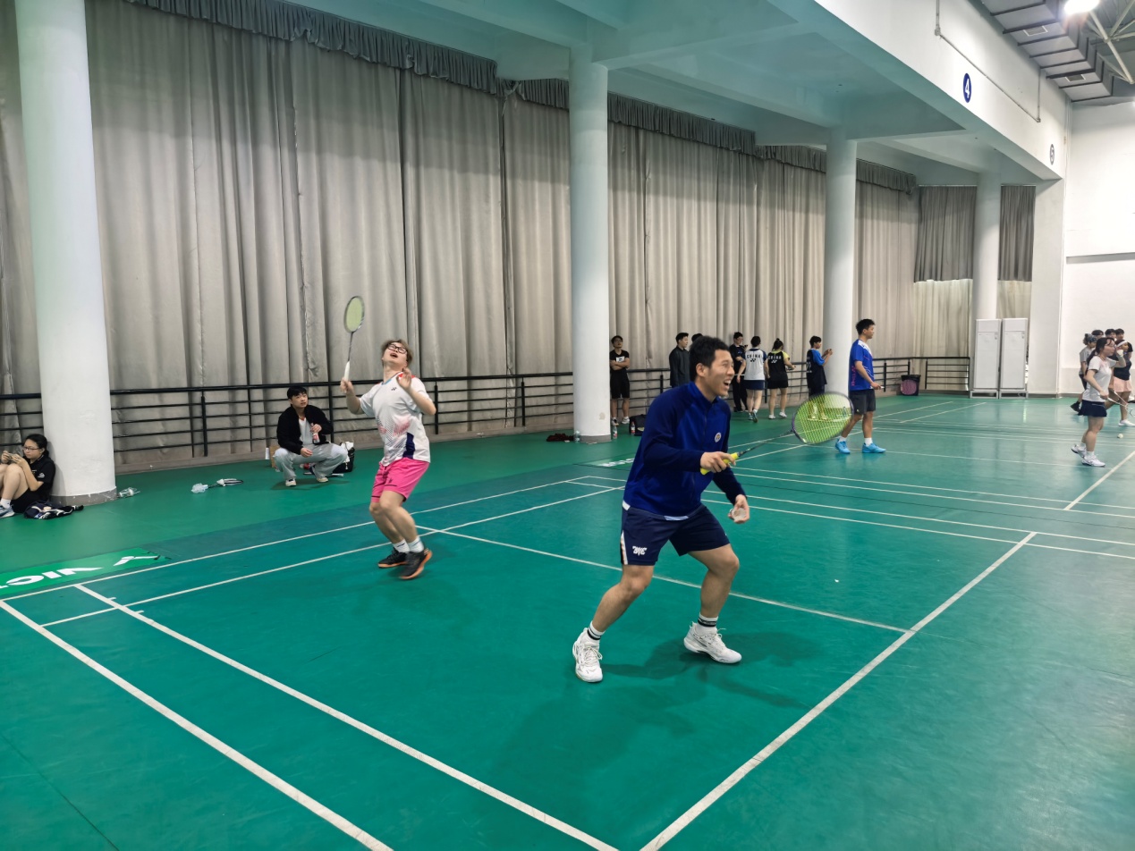本次赛事采用“男单+女单+男双+女双+混双”五场三胜制的赛制,分为小组赛、淘汰赛两个阶段。赛事全程严格执行中国羽毛球协会最新竞赛规则,确保公平公正。赛场上,选手们奋勇争先、各展所长:高远球、吊球、杀球轮番上演,网前截击、底线救球精彩频出,利落的挥拍、矫健的身姿充分展现了南工学子昂扬向上的精神风貌。团体赛的特殊属性更让赛场处处流淌着团队协作的暖流:场下队友的加油呐喊声此起彼伏,每一分结束后选手间互相击掌鼓励,即使落后也无一人轻言放弃,完美诠释了“团结、拼搏、进取”的体育精神。