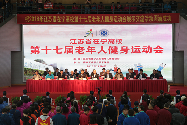 2018年11月4日,江苏省在宁高校第十七届老年人健身运动会在我校体育馆举行。此次运动会由江苏省在宁高校老年人体育协会主办,我校承办。包括我校在内的26所在宁高校的2300余名老年运动员及工作人员、志愿者参加了本次运动会。江苏省老年人体育协会主席王湛、常务副主席华洪兴,江苏省在宁高校老年人体育协会理事长李国荣,副理事长石征禄、李丰文、袁川耈、妙坤、朱炳如,秘书长胡连城,南京大学、东南大学、南京理工大学、南京农业大学等高校校领导及我校校长谢永华、党委副书记苏小冬等出席并在主席台就座。